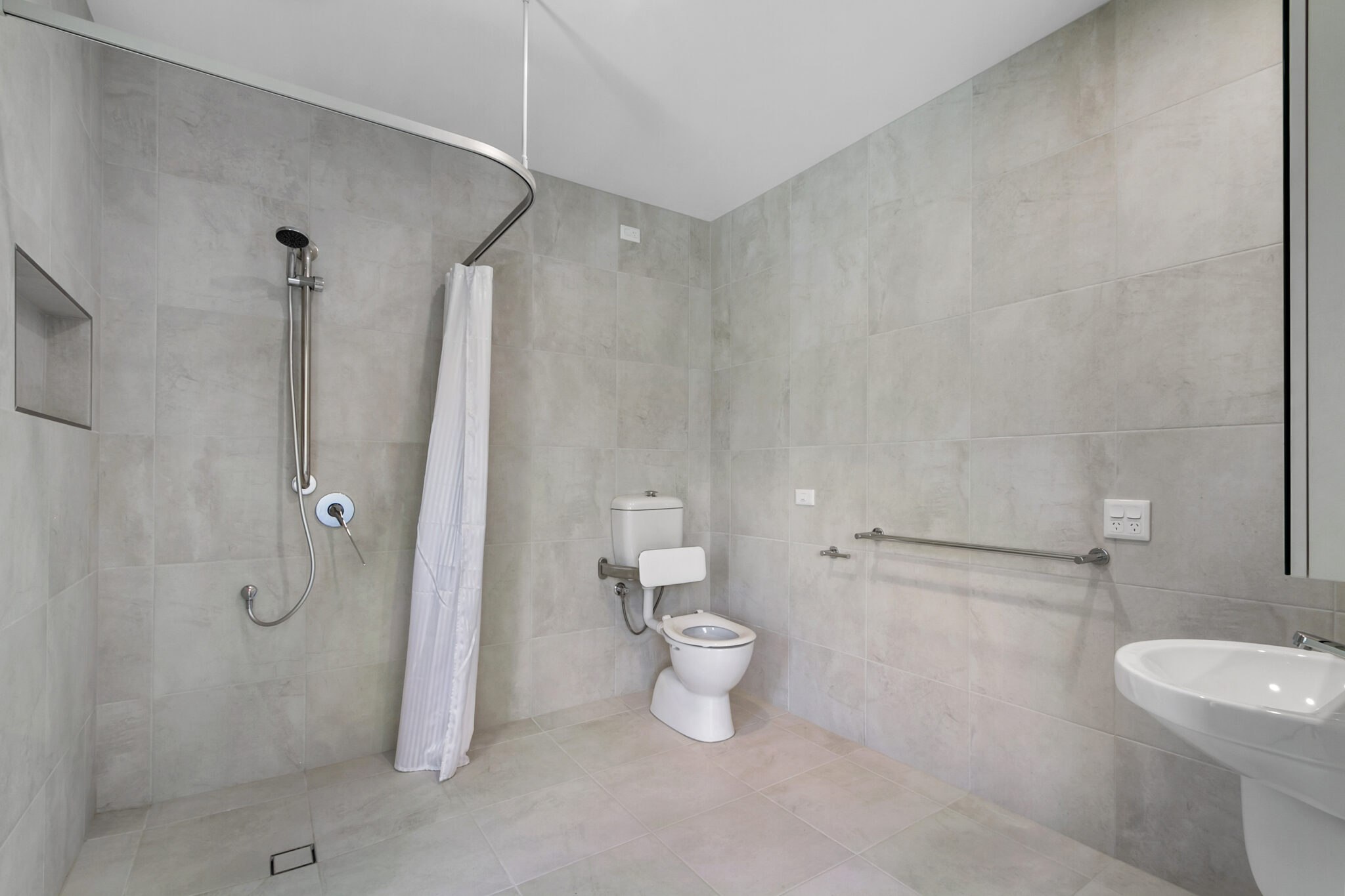 Fire sprinklers fitted, hoist provision, automatic door provision, auto blind/curtain provision, adjustable benchtops in the kitchen.